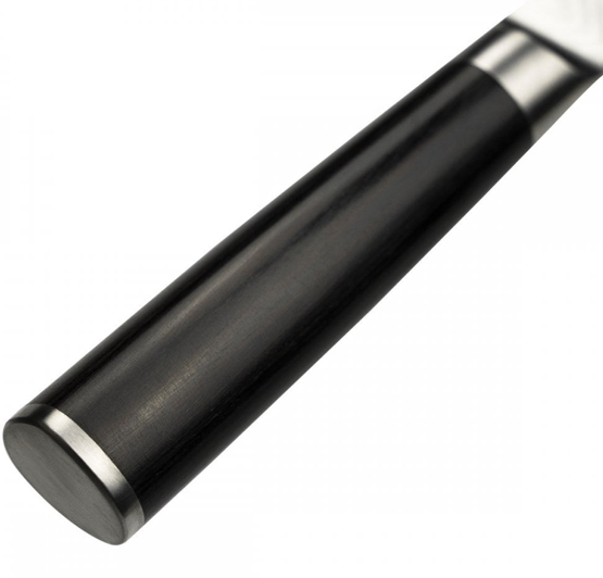 Kai Shun adapts centuries-old samurai blacksmithing to make exceptional Japanese knives for the modern cook. Every knife in their world-renowned Classic range has a steep tapered blade, which makes it much sharper than a Western knife. A core of hard VG MAX steel, surrounded by 32 layers of Damascus steel, makes it extremely durable and rust-resistant, ensuring the knife retains its edge in between sharpenings—with a whetstone only. The layers, which create a unique pattern on each knife, help prevent food from sticking to the side of the blade. The tarnish-proof pakkawood handle has a chestnut (or ‘D’) shape that moulds perfectly to your right hand